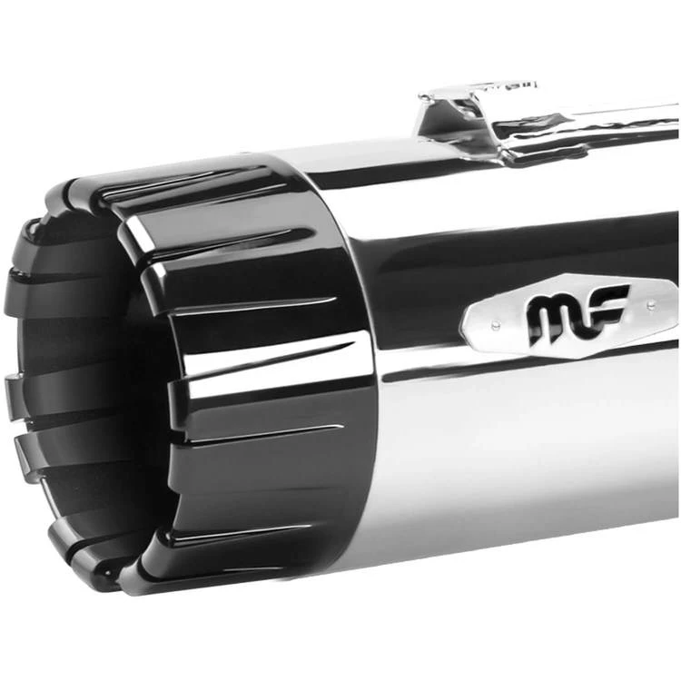 MagnaFlow 4-1/2” Top Gun slip-ons deliver maximum horsepower gains with a style statement like no other. Top Gun slip-ons deliver rich, deep, thundering bass sound quality with reduced decibels at cruising RPM’s making them the ideal upgrade of long haul, performance minded riders. MagnaFlow’s top of the line Pro-Flow 3 step perforated baffle cores are engineered to generate dynamic power and sounds with added throttle response over stock. Top Gun slip-on mufflers are perfect for: • Highly tuned engines that demand ultimate flow and output or • Stock engines looking for that added edge The distinctive end caps with 3-D inner and outer precision channeling set the standard for style on this performance upgrade slip-on. Top Gun slip-ons easily bolt on to stock or MagnaFlow head pipes with all mounting hardware included. Experience the quality, power and sound of MagnaFlow's unmatched Top Gun slip-on exhausts for motorcycles. With a chrome finish and black end caps, you'll not only have the best sounding system, but the best looking performance exhaust on the road. Custom fit to your bike, MagnaFlow's muffler sets for years 2017 and up are a guaranteed improvement to your stock exhaust system.